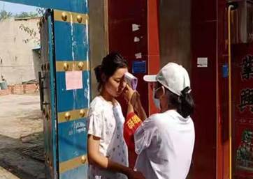 21级国际经济与贸易专业李孟果为村民测量体温
