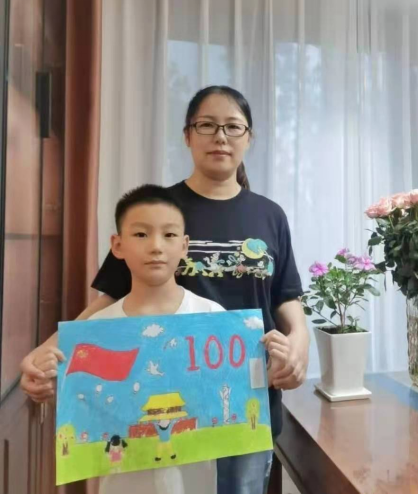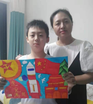 蔡旭明老师亲子绘画作品《向党的百年华诞致敬》