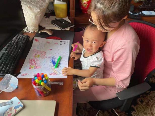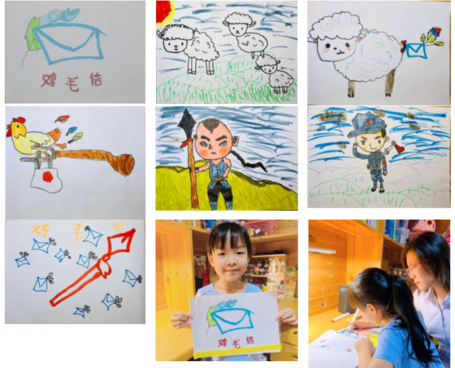 该活动是由教职工讲述红色故事,并指导子女创作红色绘画作品。参与活动的小朋友从18个月到10岁不等。孩子们以自己独特的视角,通过纸和笔勾勒线条、涂擦颜色,在父母讲述的红色故事中,融入自己的理解和思考,绘制了如 “我的祖国我的家“、“红色•向前”、“少年强则中国强”、“鸡毛信”等红色主题作品,表达了孩子们对英雄、对当下美好生活、以及中国共产党百年成就的歌颂。