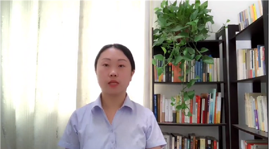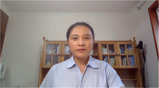 教师代表马丽丽分享关于线上教学所做的“三个精心”工作,即课前精心选择教学平台及资源,课中精心组织课堂教学内容,课后精心设计教学考核评价。