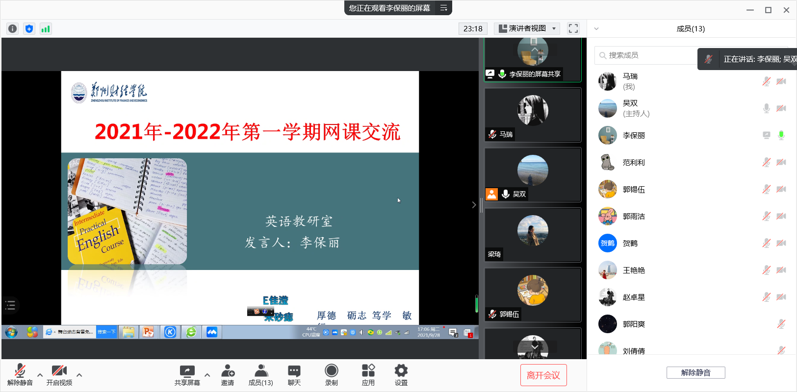 李保丽老师分享《综合英语》线上教学示范观摩课