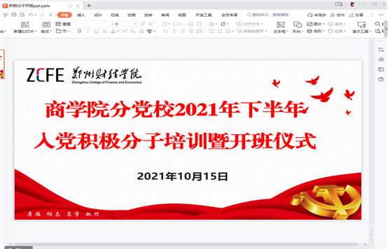 为提高商学院入党积极分子的政治理论水平,端正其入党动机,10月15日,商学院分党校线上举行2021年下半年入党积极分子培训暨开班仪式,128名入党积极分子参加此次开班仪式。