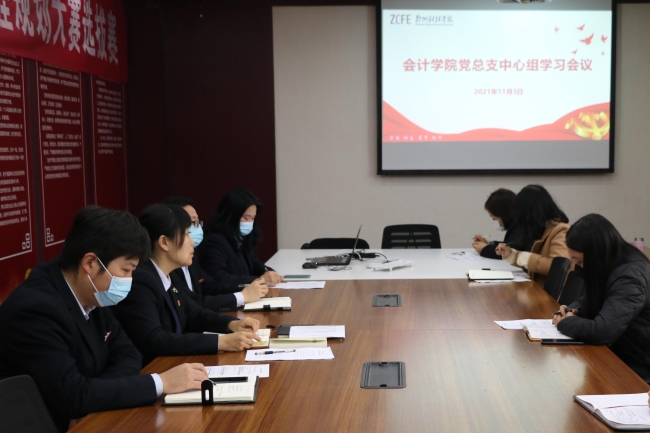 11月3日上午,会计学院党总支在德信楼208会议室召开中心组学习会议。学院党总支全体委员及各支部书记参加会议,会议由党总支书记温毓敏主持。