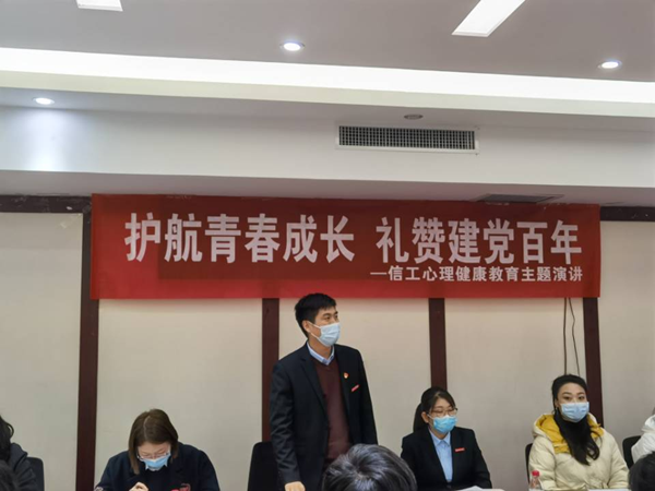 为进一步加强信息工程学院的心理健康教育工作,推动心理健康教育内容和形式创新,引导当代青年学生树立积极向上、乐观坚强的人生态度。11月9日,信息工程学院在德正楼A508会议室举办了“护航青春成长,礼赞建党百年”心理健康教育主题演讲比赛决赛。学院党总支书记袁雪霞、副书记钟博、教学秘书马琳雅、2021级年级长郭彩霞、辅导员代表马晨晨、王博担任本次演讲比赛的评委嘉宾。
