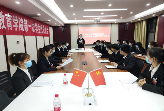 为深入学习和贯彻落实习近平新时代中国特色社会主义思想,特别是对青年工作的重要指示,进一步完善学生会工作体制,培养德才兼备、高效团结的学生干部队伍,努力开创新形势下学生会发展新局面,在校团委的关心支持和悉心指导下,11月10日,教育学院第一次学生代表大会在德正楼608会议室隆重召开。教育学院党总支副书记曹亮、团总支书记崔灿,及来自学院各年级的20名学生代表参加大会。
