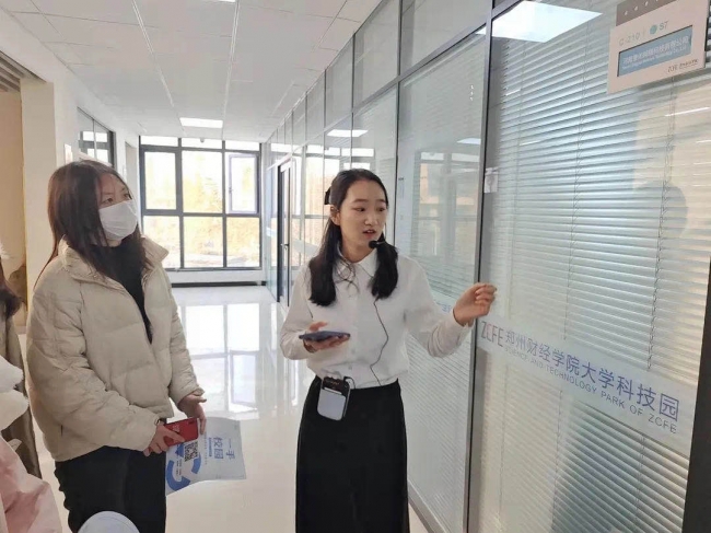 大学科技园工作人员向万象城学生宣传讲解创业政策