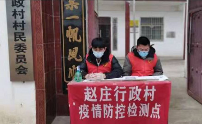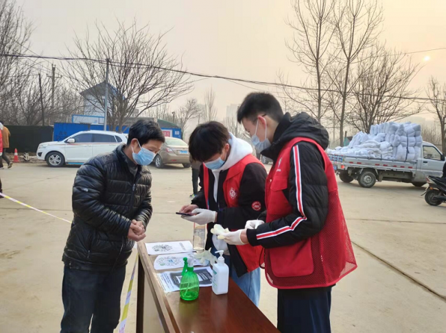 寒假返回家乡后,20土木2班岳晓东主动向村支部报到,成为了一名志愿者。他配合村里打印疫情防控登记表、在值班卡点为来往人员测量体温、登记近期返村人员信息、记录村里近期办事情况,监测重点观察对象。