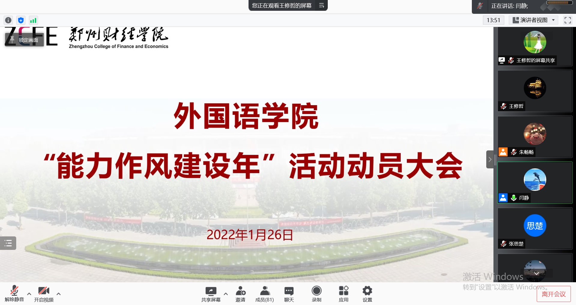 外国语学院线上召开“能力作风建设年”活动动员大会