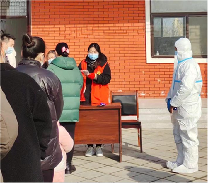 贾文婷的家乡位于河南省鹤壁市淇滨区的一个小村庄,距离安阳、汤阴等疫情高风险区非常近。因此疫情防控工作必须要慎之又慎,严之又严。作为青马班的一员,同时作为一名光荣的志愿者,回家后,贾文婷立即拿起自己的电脑到村委会报道,请求加入疫情防控志愿者,为村里的疫情防控工作贡献自己的一份力量。她和其他大学生志愿者一起负责统计12月20日后返乡人员,第一次全员核酸的人数、核酸地点和时间。疫情严峻,必须把信息落实到每家每户的每个人,其中包括在外务工人员、老人、幼儿和学生,不能有丝毫遗漏。大家都非常认真,毫不懈怠。每每忙碌到深夜,相视一笑结伴回家,虽然寒风凛凛,但她感觉到内心有一团火在燃烧。