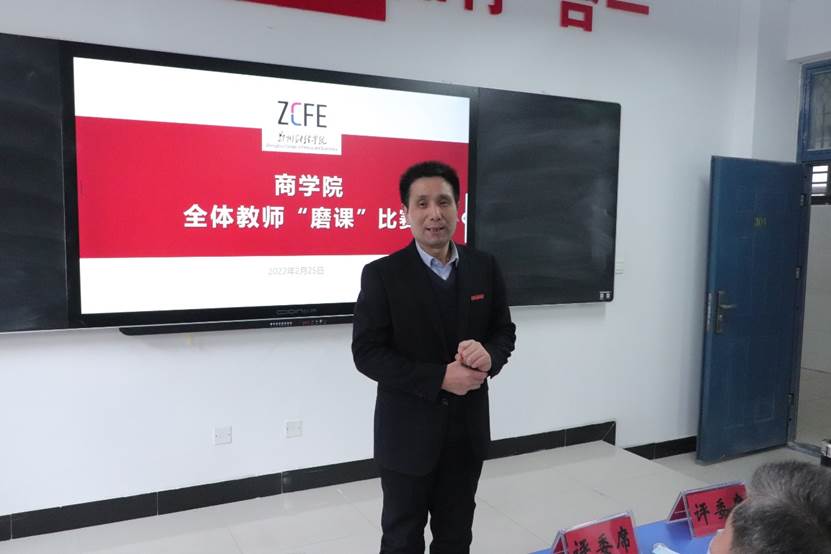 2月25至26日,商学院在育萃楼三楼举办了全体教师“磨课”比赛,校监事会主席李庆阳、常务副校长张胜利、副校长张顺利出席赛前会议并观看比赛,校督导办、教师发展中心、科研处相关专家担任本次比赛的评委。
