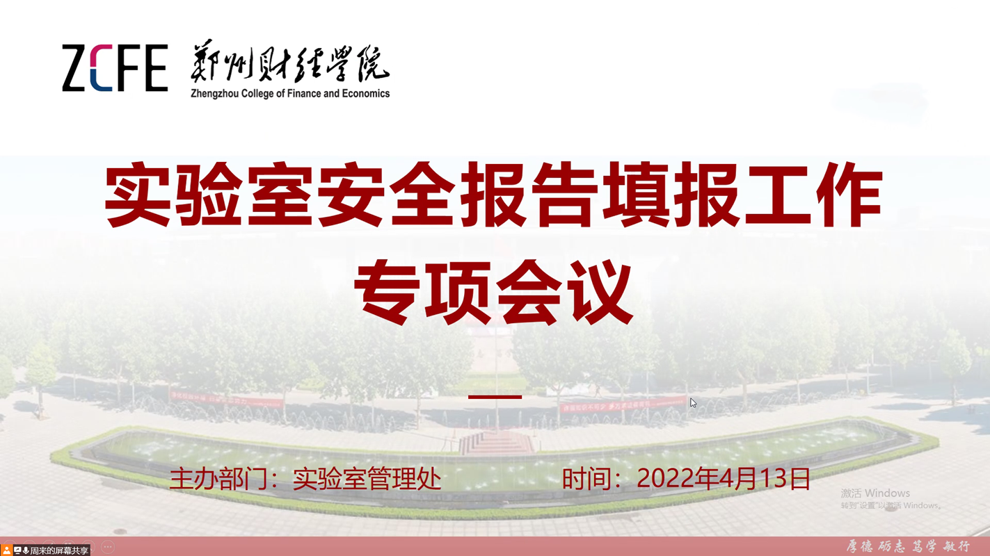 根据《教育部办公厅关于提交2021年度高校教学实验室安全工作年度报告的通知》教高厅函〔2021〕37号文件的要求,为做好2021年度学校实验室安全数据填报工作,4月13日上午,万象城召开实验室安全数据填报线上推进会,实验室管理处处长周来出席会议,实验室管理处部分工作人员参加会议。