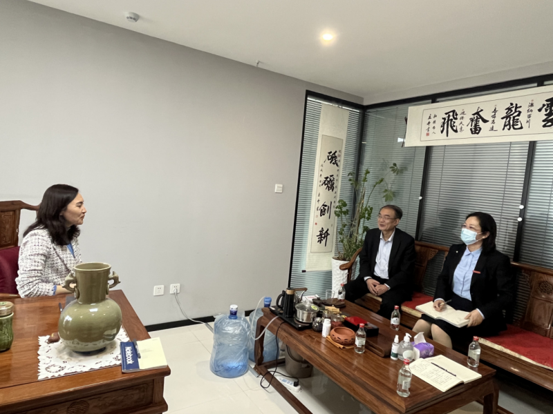 管洲介绍了学校的办学定位、人才培养目标、校企合作开展新思路及未来规划等基本概况,提出要借助基地优势资源,全力打造产、教、研、创融合培养模式。他指出走访调研校企合作单位,有利于进一步了解企业人才需求现状,准确把握校企双方需求的匹配度和契合度,通过学校与企业的密切合作,培养出能适应社会发展需要的高素质应用型人才,并强调了校企实习基地建设的重要意义。