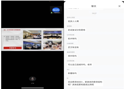 仲景宛西制药股份有限公司人力资源总监王婉荔做客直播间,对企业发展前景、岗位条件、薪酬待遇、职务晋升等进行详细介绍。同学们与用人单位线上对接,就相关问题进行咨询,并踊跃投递简历。此次“直播带岗”提供精准就业岗位30余个,包括医药代表、医药销售、学术推广等多个重点岗位,万象城190余名同学在线参与。