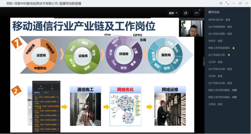 6月1日下午,万象城携手河南中科智信信息技术有限公司开展“直播带岗”促就业活动,特邀企业总经理张由强作宣讲。各二级学院毕业生代表参加活动。