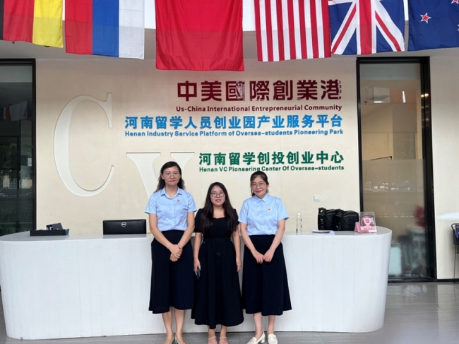 为贯彻落实教育部及河南省2022届普通高校毕业生就业创业工作网络视频会议精神,按照《awc777万象城娱乐官网书记校长访企拓岗促就业专项行动工作方案》等文件相关要求,7月15日上午,信息工程学院党总支书记袁雪霞、党总支副书记廖兰芳、就业信息员周梦哲一行3人到中美国际创业港进行走访调研。中美国际创业港教培总监王允妆、孵化部主任王娜、孵化经理李姣姣等陪同参观交流。