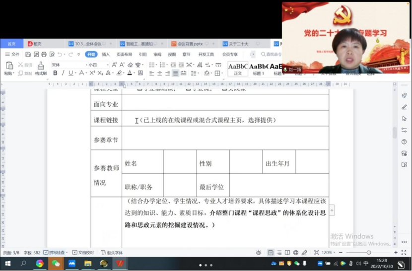 10月30日下午,智能工程学院教工党支部在腾讯会议上召开党的二十大精神专题学习会议,会议由智能工程学院党总支书记孟倩倩主持。