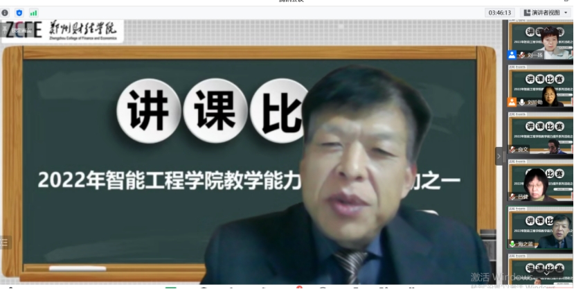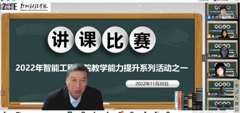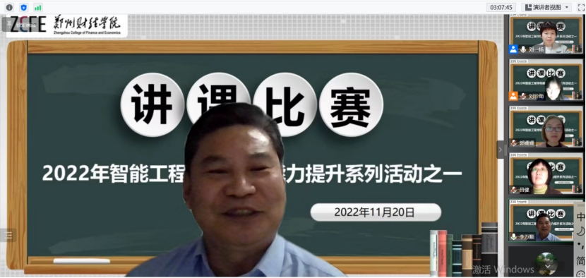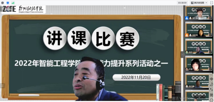 为深化教学改革,加强内涵建设,全面提升智能工程学院教师的教学水平和教学能力,11月20日,智能工程学院举办了教学能力提升系列活动之讲课比赛,9位教师在“云”端开展教学技能大竞赛,学校督导办李万顺教授,智能工程学院院长刘於勋、党总支书记孟倩倩,专业带头人何文平教授、王良文讲授、胡修池教授、吕健教授担任此次比赛的评委。