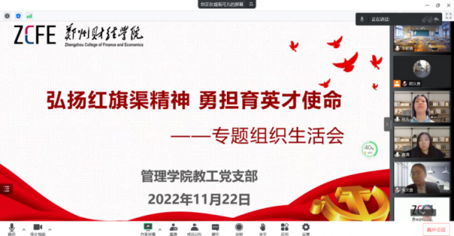 为深入学习贯彻党的二十大精神和习近平总书记视察河南安阳重要讲话精神,确保全体师生党员在疫情期间思想学习不放松,进一步推动学院持续高质量发展,管理学院各基层党支部于11月22日至25日通过线上线下相结合的方式召开了专题组织生活会。
