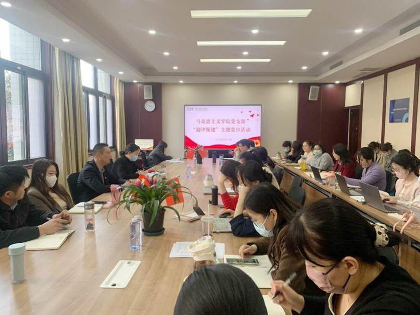 为更好地迎接本科教学工作合格评估,增强全体教师迎评促建的紧迫感、使命感和责任感,3月14日下午,马克思主义学院党支部在德馨楼202会议室召开主题党日活动。学院党政领导班子成员及全体教师参加会议。会议由党支部书记陈康主持。