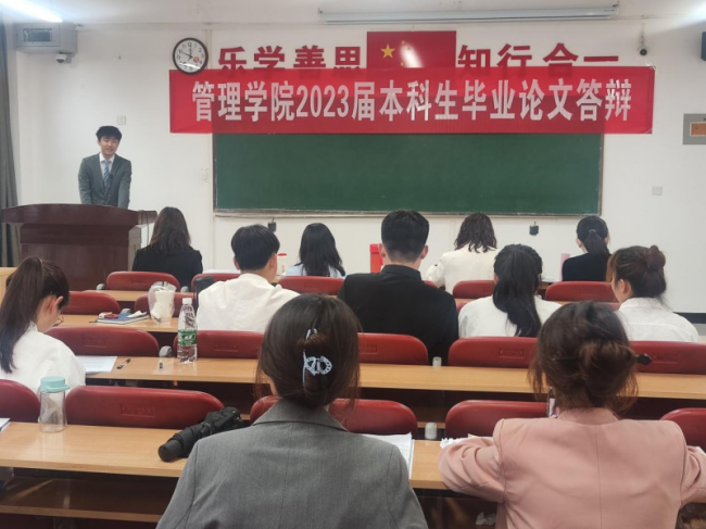 5月27日,管理学院顺利组织2023届本科毕业论文答辩,260多名物流管理、酒店管理及工商管理专业本科毕业生分组参加答辩,2024届本科生代表在线观摩答辩。管理学院论文答辩委员会主要成员莅临指导答辩工作。