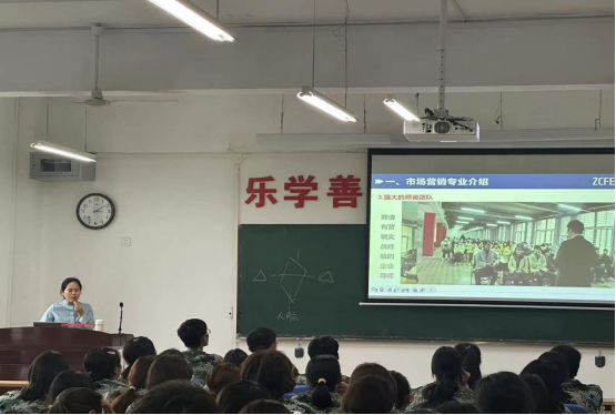 副院长崔小俊副教授和教研室副主任聂攀科,分别进行了市场营销专业本、专科人才培养方案解读,从专业基本情况介绍和人才培养方案解读两个方面,为2023级新生进行入学教育。通过专业基本情况的介绍,使新生们对市场营销专业的发展历程、专业特色、师资队伍情况、实践教学环境、专业社团等,有了更深入的了解,对市场营销专业有了更清晰的认知。