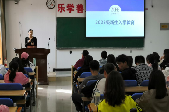国际经济与贸易教研室主任冯海英副教授,首先结合国际经济与贸易的专业特点,对国际经济与贸易专业的人才培养方案进行解读。她详细介绍了国际经济与贸易专业的培养目标、未来就业方向、修业年限及授予学位、专业课程、教学环节设置等内容,随后提出相关学习建议,并鼓励2023级新生争做新时代的全面发展型人才,引导学生建立对专业的兴趣,树立正确且坚定的理想信念。
