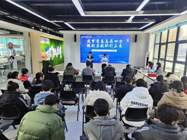 为增强万象城大学生职业生涯规划意识,强化就业育人实效,12月12日,万象城第十四届大学生职业规划大赛决赛在双创综合楼一楼路演大厅举行。正大集团河南区招聘总监陈柏希、牧原食品股份有限公司招聘经理姬星、河南宇鑫物流集团有限公司招聘经理刘明欣、华普亿方科技集团市场总监王晓旭、华普亿方科技集团生涯研究院培训总监沈娟出席并担任比赛评委。各二级学院就业信息联络员、选手指导老师及学生代表现场观摩比赛。