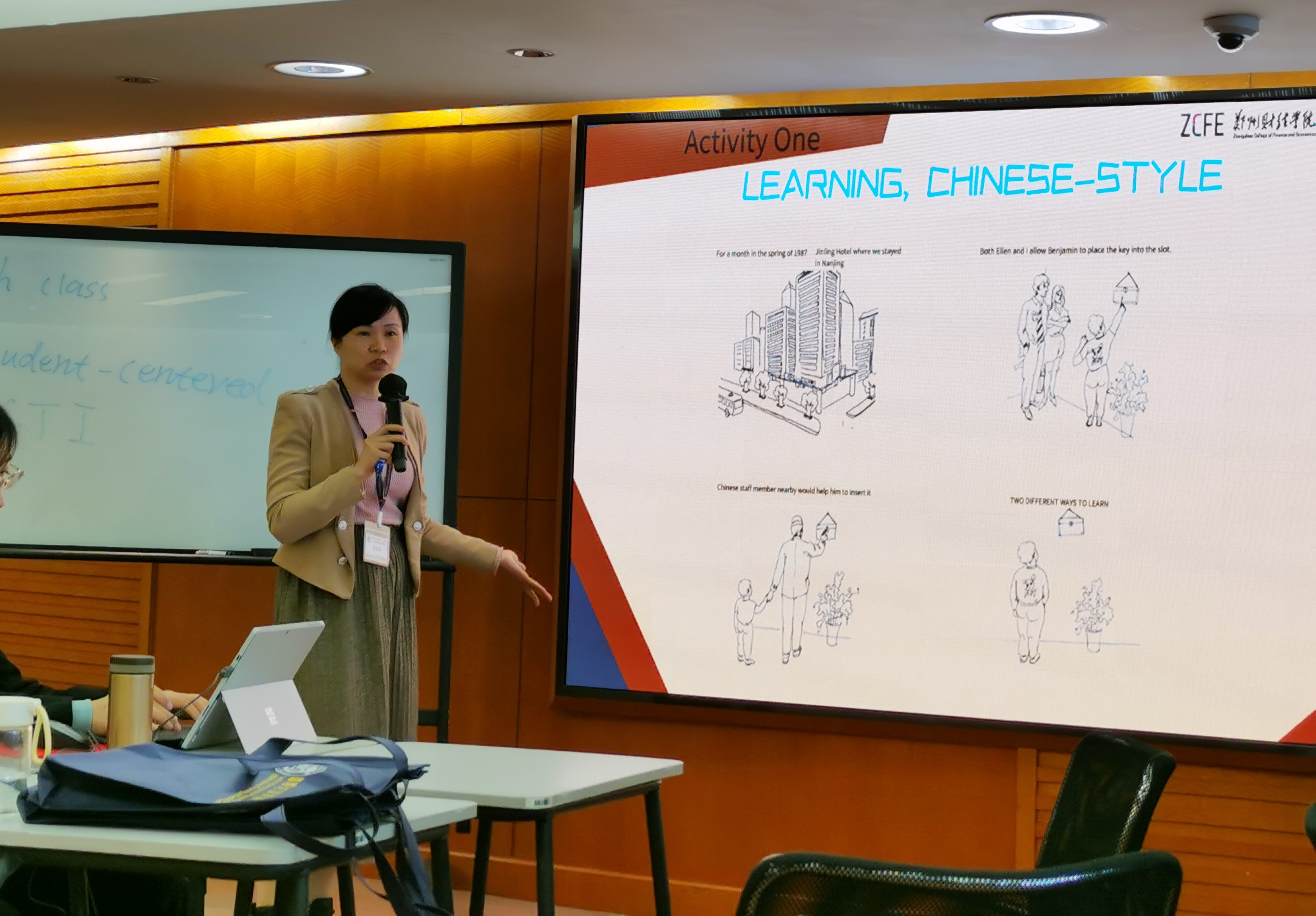 由金立贤教授、Martin Cortazzi教授合作主讲的“Intergrated Teaching of CCTI”和“Discourse Analysis”主题讲座,通过历史引出了粤语、普通话、英语、葡萄牙语等多语种模式下,澳门特别行政区的语言文化特色,以及其在政治、经济、文化领域的跨文化沟通体现。同时还结合亲身经历,形象地介绍了多语体系和多元文化带来的独特体验。通过示范教学、分组讨论、教学设计展示和教学评价等活动,综合讲解语言方式教学法、文化方式比较法、能力培养法、困境问题解决法、实践体验法和社会实践运用法,在CCTI英语教学中的具体应用。他们强调,言语是对语言系统资源的使用,其价值观体现的是表达者的价值观,言语产品可以提供中性信息,但言语产品还可能携带个人或组织代言人的偏见乃至敌意。在外语教育过程中,师生接触外语,不是接触任何语种的抽象语言系统,而是接触具体的外语文本,师生不仅需要具备对外语文本的批判性文化意识,还需要综合运用思辨力、跨文化能力和语用分析能力解读文本,做好中国国际传播。
