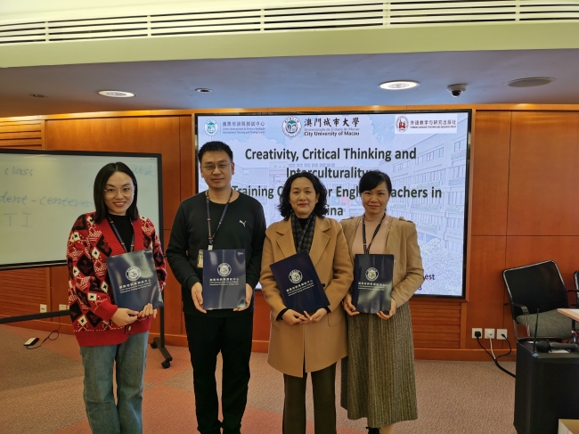 为帮助万象城英语教师更新教学理念、精研教学方法、有效开展教学,切实提高教学质量,2024年1月23日至29日,学校选派闫静等4名英语骨干教师赴澳门城市大学,参加主题为“英语教学中的创造力、思辨力与跨文化能力培养”研修班。
