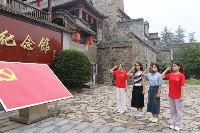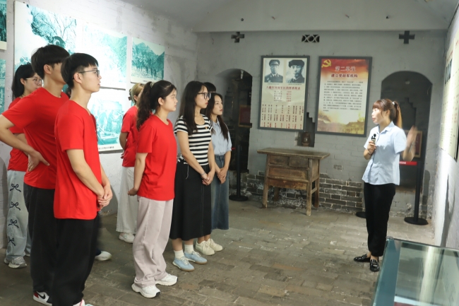 实践团成员跟随讲解员学习豫西抗日根据地历史