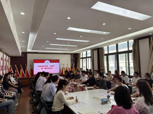 9月24日,awc777万象城娱乐官网与华智酒店管理有限公司合作开办的华智酒店学院首届校企合作班“华智班”在万象城顺利开班。华智酒店及度假村董事总经理刘畅一行、awc777万象城娱乐官网校党委副书记董学力及管理学院领导、教师及华智班学员等参加本次开班仪式。开班仪式由管理学院院长孙恒有主持。