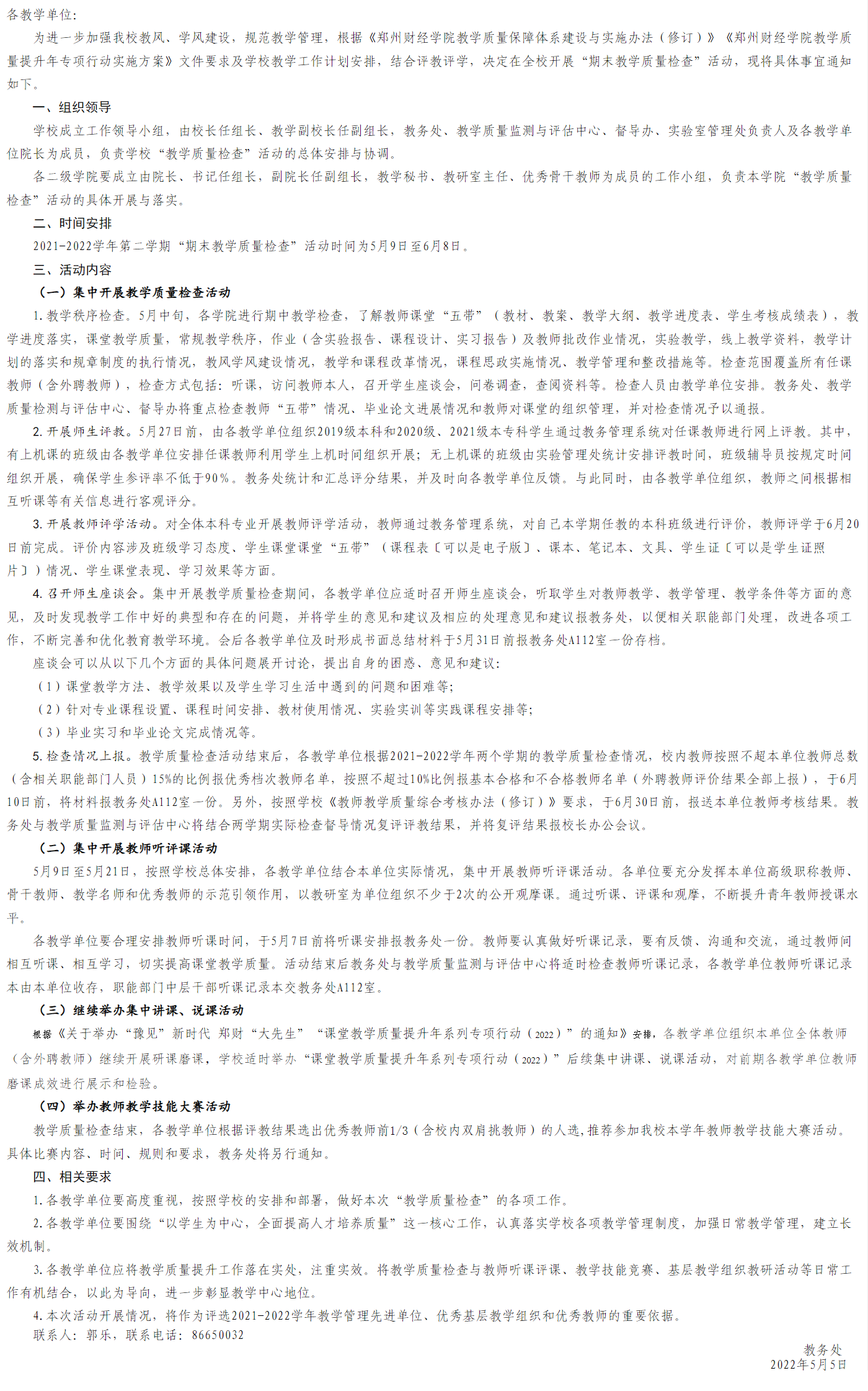 关于开展2021-2022学年第二学期“期末教学质量检查”活动的通知