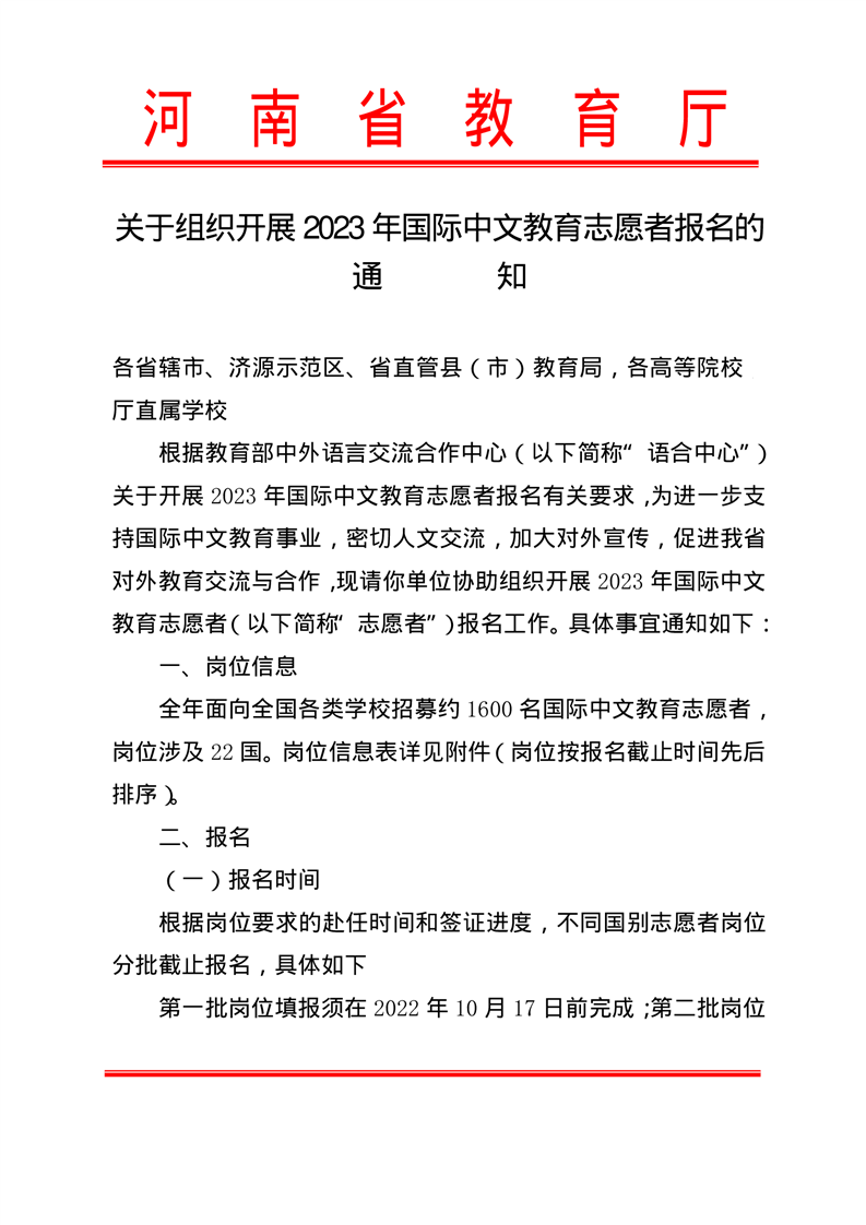 关于组织开展2023年国际中文教育志愿者报名的通知