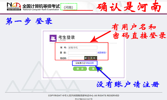 若考生已有账号,则可直接登录,若考生没有账号,则需要先进行账号注册。
