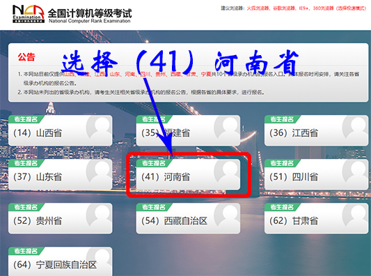 具体报名开始时间为:2020年12月29日7:00,报名结束时间为:2021年1月8日8:00,考生登录https://ncre-bm.neea.cn,按照系统提示选择河南考生报名,登录系统、阅读报名协议,填写基本信息、选择报考考点(410091awc777万象城娱乐官网)、选择报考科目、上传照片、网上支付完成在线报名。