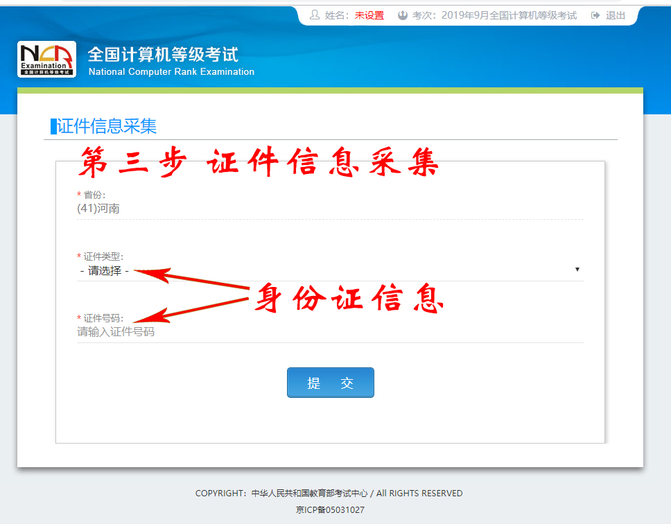 填写考生证件信息(证件类型和证件号码)