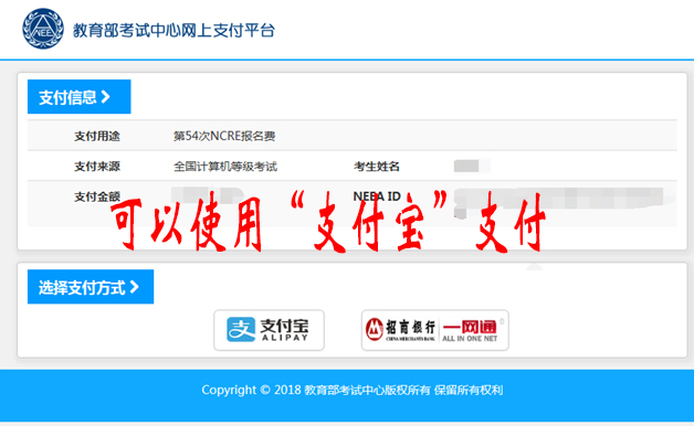 第七步:支付报名费,选择支付方式进行支付即可。