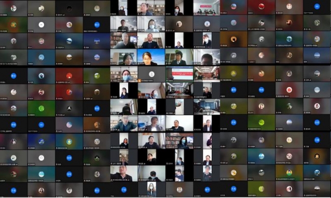 校党委书记李国强、校长于向英等校领导在学校德正楼第二会议室直播现场出席会议。各二级学院、职能部门负责人、科研先进集体和先进个人、教师代表等300余人通过腾讯会议平台线上参会。