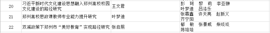 郑州市2021年度社会科学调研课题获奖名单