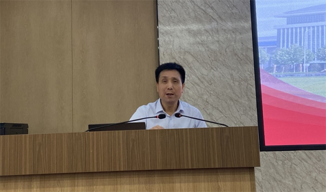 会上,教学质量监测与评估中心副主任程国秀从课程评估的必要性、课程评估方案、指标体系及整体时间安排等四个方面,对本科课程评估工作进行详细的说明和讲解。督导办主任赵安芳从智慧教学的角度强调课程建设应具特色,以智慧教育改革课堂教学模式,提升人才培养质量。