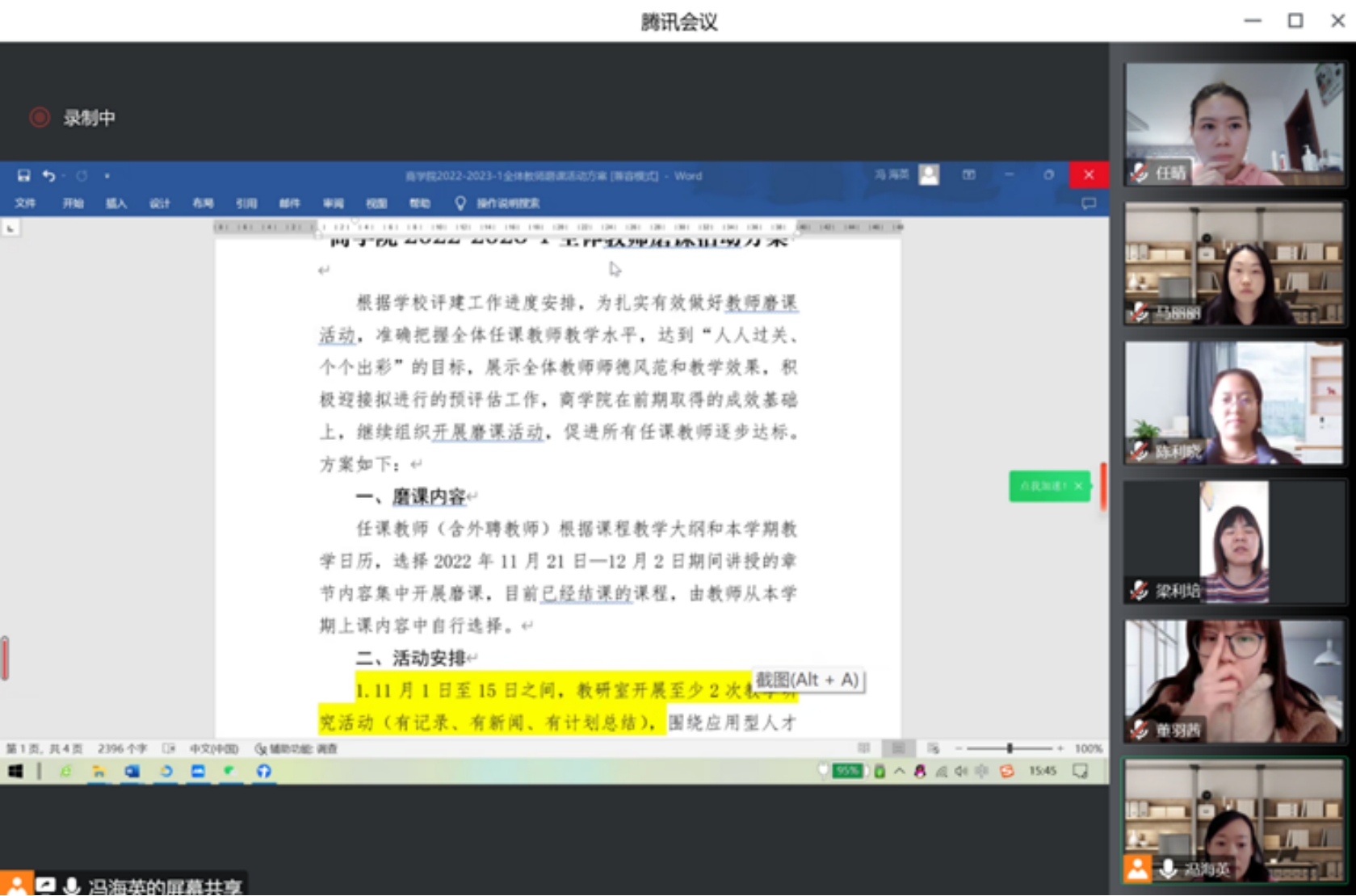 商学院国际经济与贸易教研室开展学习金课评分标准教研活动