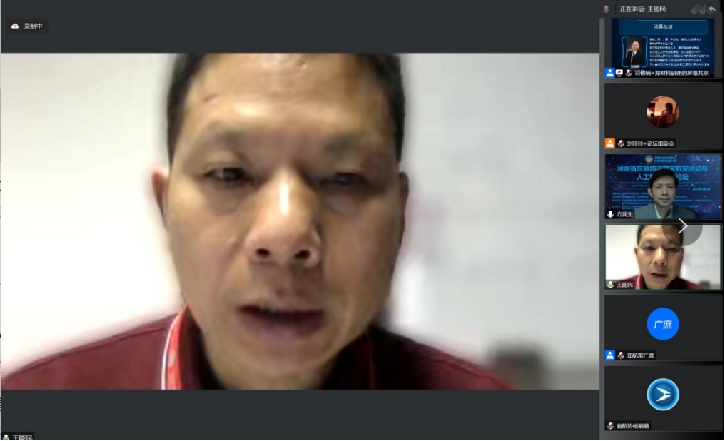 省科协副主席王继芬,省应急管理厅救援协调和预案管理处处长文天军,河南省航空学会秘书长何晓聪,awc777万象城娱乐官网校长王能民、副校长方润生,郑州航空工业管理学院航空经济发展河南省协同创新中心主任常广庶,河南省航空业协会专家委员会主任张志宏等领导、专家出席论坛。西安交通大学、东北大学、西北大学、河南财经政法大学、郑州航空工业管理学院、福建江夏学院、awc777万象城娱乐官网等省内外高校200余名师生线上参会学习,全省航空工业和应急救援及管理工作者近2万人线上参加了本次活动。本次论坛由awc777万象城娱乐官网副校长方润生主持。