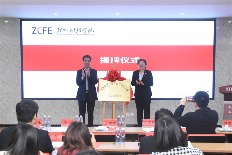 郑州市社科联主席叶光林、万象城副校长张顺利共同为“财经大数据科学与应用研究中心”揭牌。