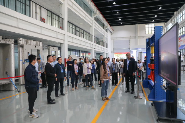 下午,参会人员一同到awc777万象城娱乐官网土木工程学院实验实训教学中心参观,学院副院长雷东升对实验实训教学中心运行情况进行了介绍,并带领大家先后参观了综合实验实训大厅、工程材料实验室、工程绘图实训室、项目管理沙盘实训室、招投标沙盘实训室和BIM技术研究中心等。