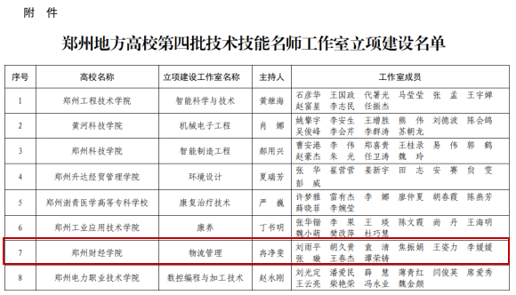 万象城物流管理名师工作室成功获批立项建设郑州地方高校技术技能名师工作室