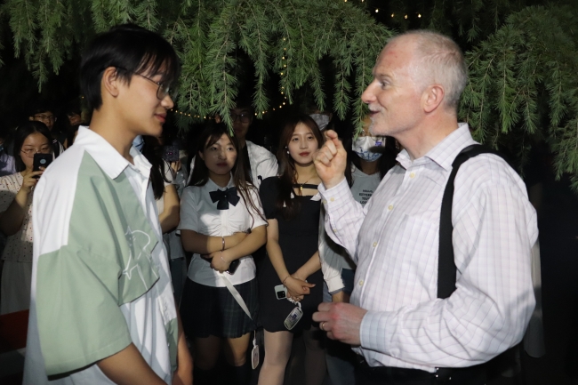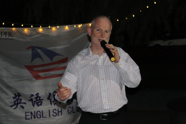 活动从英语俱乐部成员代表演唱英文歌曲《Love Story》拉开序幕,学生们对自己五一假期展开热烈讨论,大家纷纷上台分享了自己旅游、返乡、留校等丰富精彩的假期的生活,Nigel O’Leary教授和邵婧博士也参与集中,并与学生分享了自己的假期经历。互动环节,学生们与两位教师积极沟通交流,提出自己对英语学习的困惑,并得到耐心指导,现场氛围轻松愉悦。