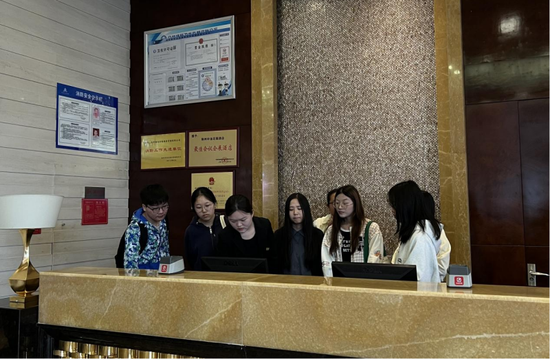 参观完毕后,根据酒店管理专业人才培养方案的见习安排,学生们分小组,以不同项目分别在酒店进行各环节的实操演练。首先,在中油花园房务部姚经理的带领下,学生们深入酒店前厅部进行前台系统的学习和实操。