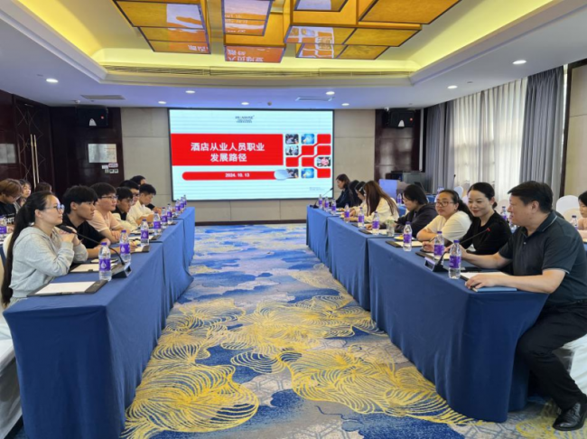 下午,华智酒店集团执行董事张浩强在酒店4楼会议室为同学们进行以“酒店从业人员职业发展路径”为题的讲座,他从“信息时代学生们的学习认知、从事酒店行业的专业知识和酒店行业的发展趋势”等几个方面进行分享,强调同学们应珍惜校园时光,把专业理论知识学扎实、时刻保持学习态度、加强胆量锻炼、强大内心,从而达到自我提升,为未来就业奠定基础。随后,学生们纷纷进行未来职业规划的分享,并表示此次活动使他们对酒店行业有了更深刻的认识和信心,同时巩固了理论知识。