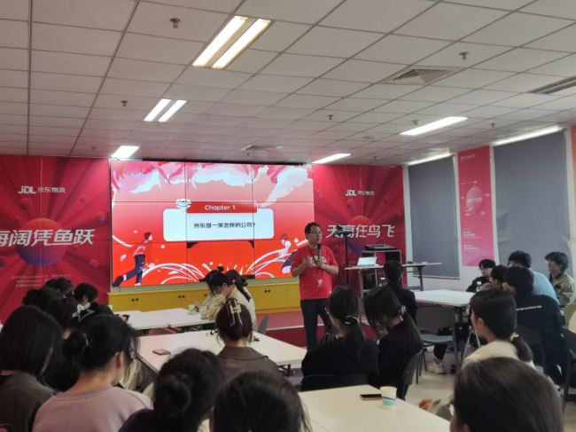 此次专业见习分为报告讲座和走动式学习两个环节。报告讲座上,京东物流工作人员详细介绍了京东物流的发展历程、供应链业务、物流业务和管理状况等,郑州亚一是继东莞亚一、武汉亚一之后京东物流全力打造的第三个建筑面积超过600亩、辐射人口上亿的智能物流园区,也是京东物流在中原地区最大的物流枢纽中心。交流讨论环节中,学生们重点咨询了京东校园招聘的具体要求,学习中应着重培养的相关能力等内容。