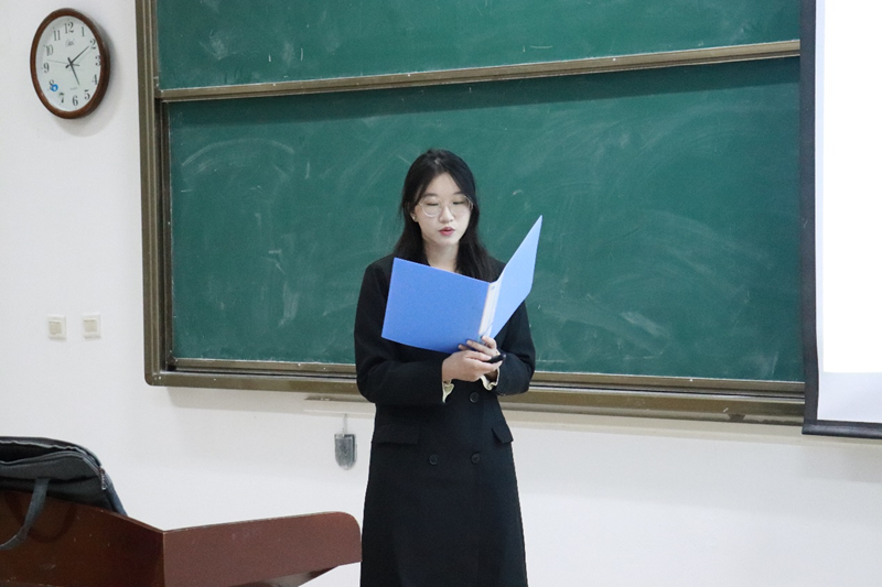 最后,22级优秀学生代表王月珍为新生们分享自己在进入大学之后的学习经验,包含参加竞赛、英语角、社会实践等活动,一张又一张的证书让大家有了追求的目标,她鼓励大家新学期要树立自己的目标,合理规划自己的学习娱乐时间,并且多渠道、多方式获取一些比赛信息,通过参加比赛提升能力,并在汇报结束后积极为新同学解答疑问。
